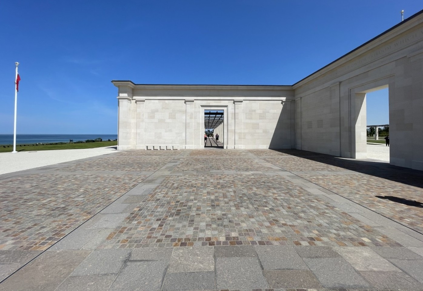 At the centre of the British Normandy Memorial is a stone plaque set into the floor, entitled: D-Day The Landings. This plaque symbolically marks the starting point of the liberation of Western Europe on June 6, 1944.
