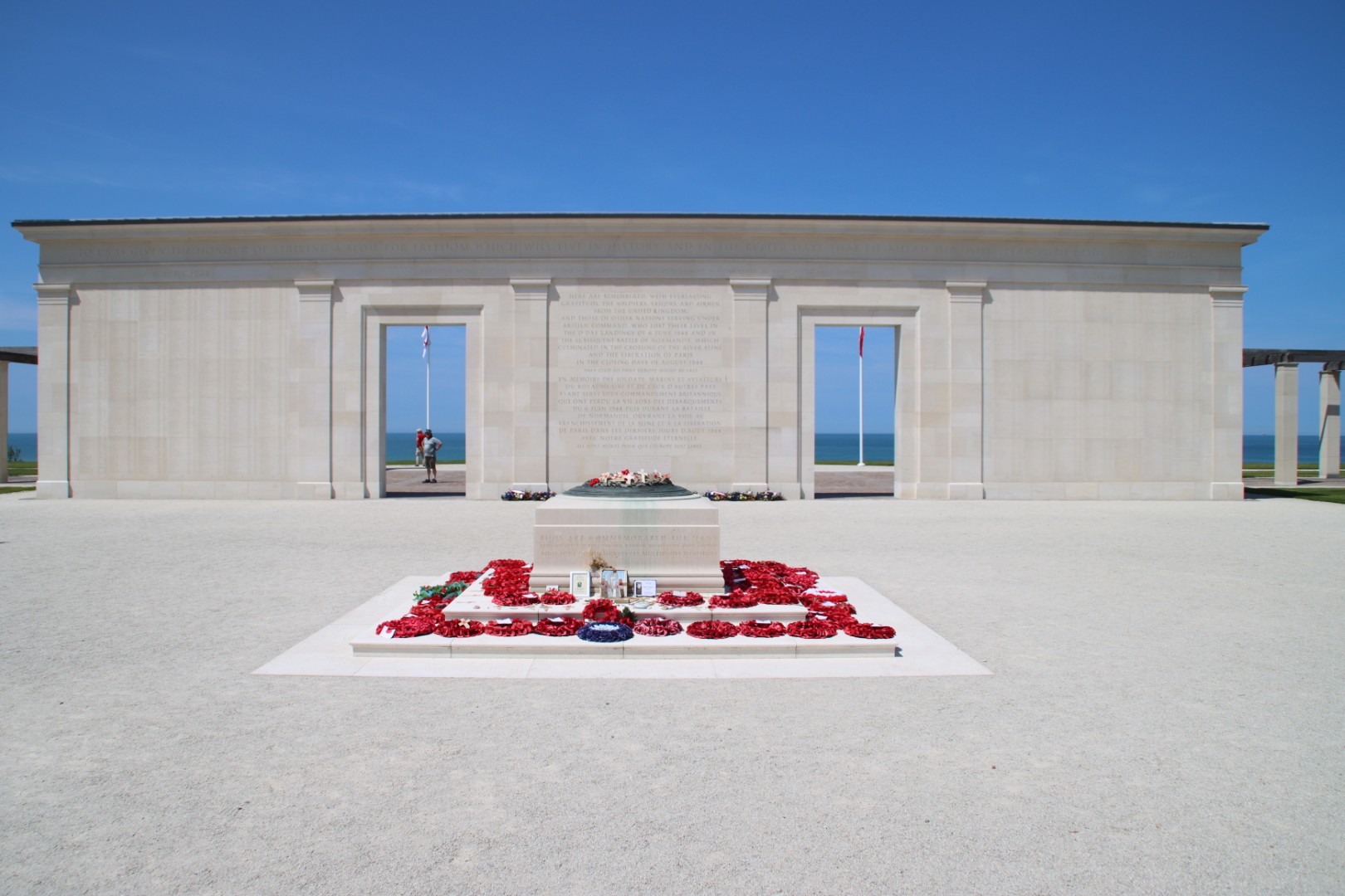 Rond het centrale "D-Day - The Landings" monument staan 160 witte pilaren (zuilen) waarin de namen van de Britse en Commonwealth soldaten zijn gegraveerd die zijn omgekomen tijdens de Slag om Normandië 1944.