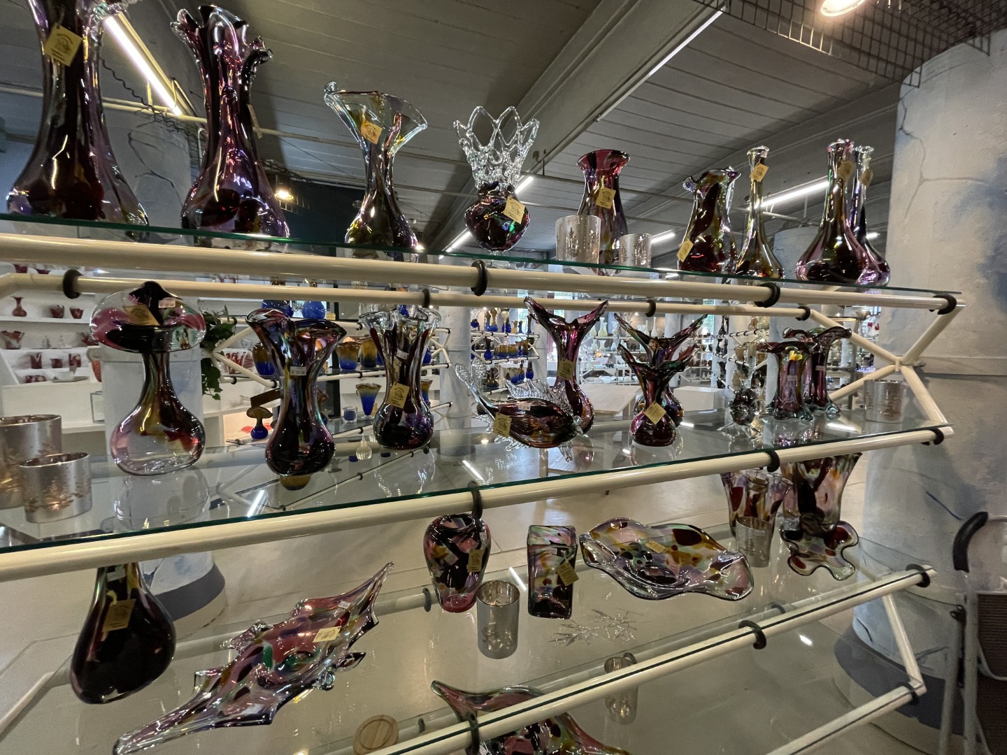 The Glashütte is a glassblowing factory and workshop where artisans make glass by hand. It is also a shop where all the glass is on display. So you can not only look there but also buy glassworks.