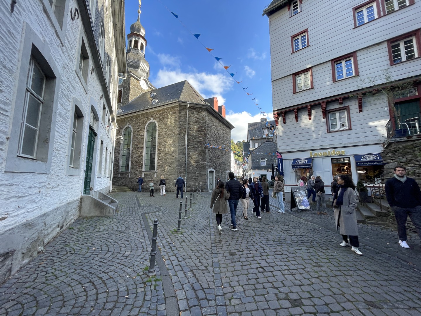 The beautiful Evangelische Stadtkirche stands on this street and is the Protestant city church of Monschau. It is an important historical and architectural monument in the center.