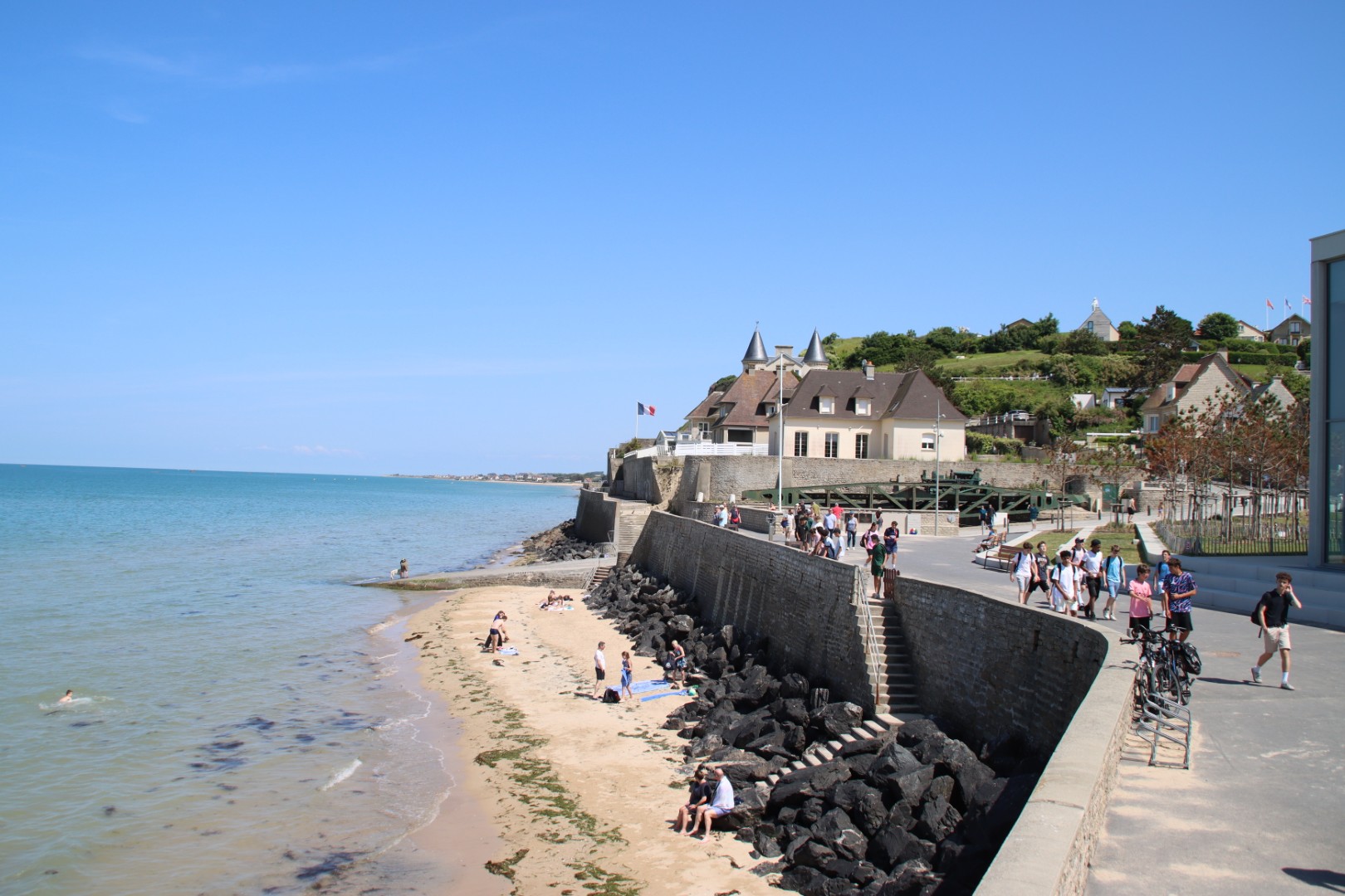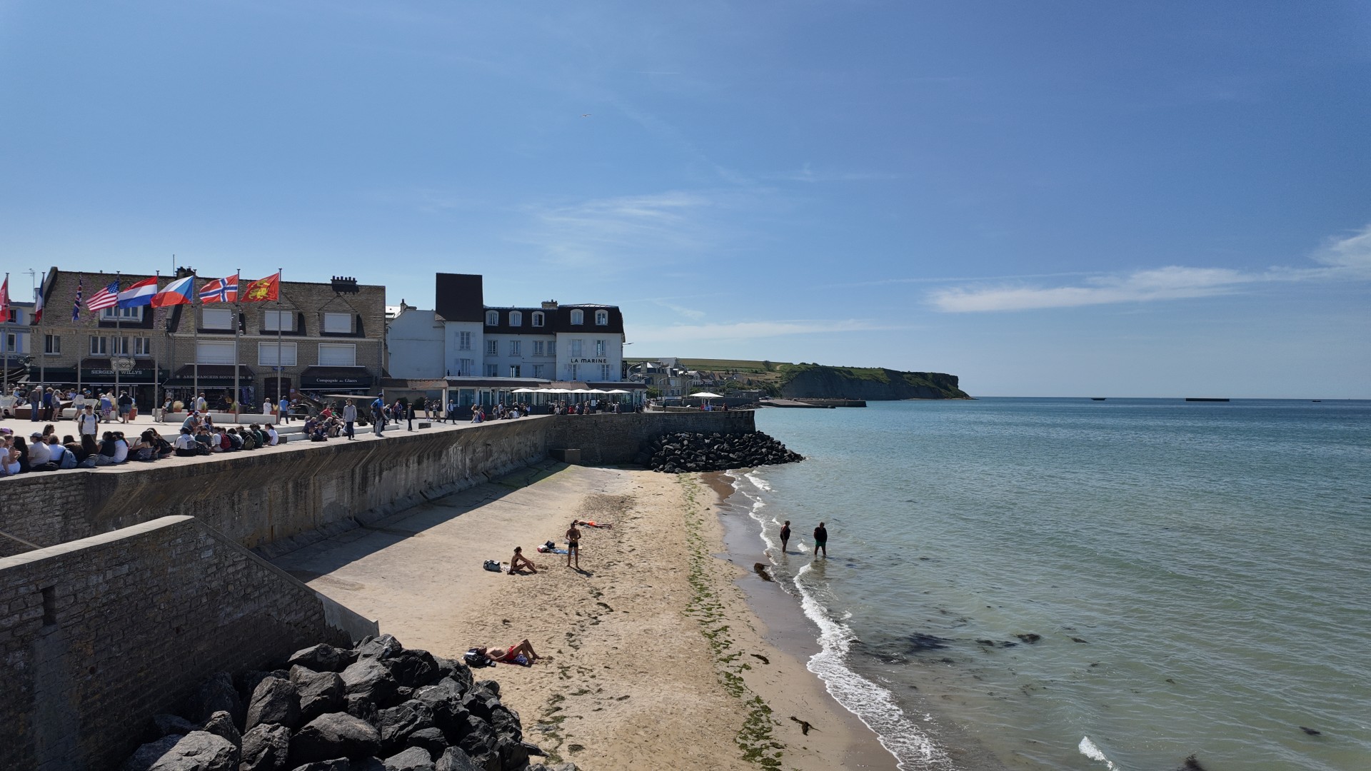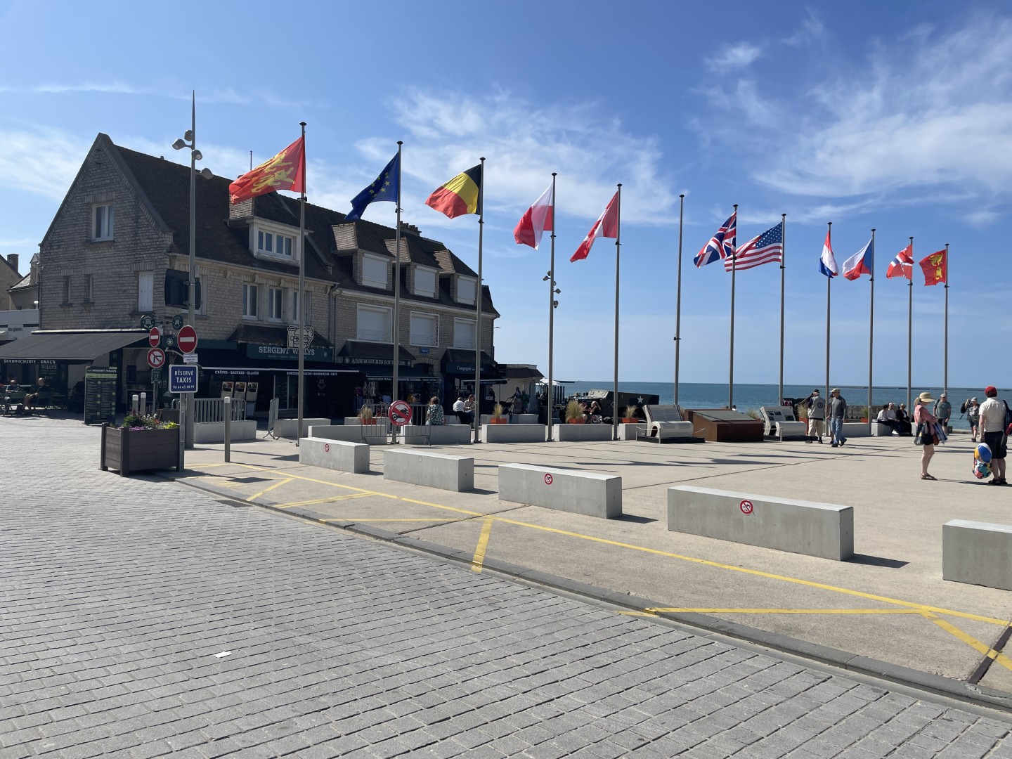 4) Place du 6 Juin: Dit is het centrale plein in het dorp, genoemd naar D-Day. Rondom vind je vele cafés, winkels, het museum en herdenkingsplaten en zicht op zee. Het plein functioneert als verzamelplek voor de bevolking en de toeristen.