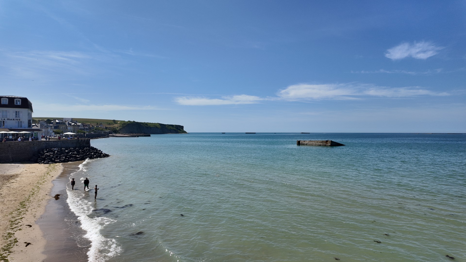 The massive concrete caissons located in the sea at Arromanches-les-Bains served a specific and strategically crucial function during World War II. It formed part of the artificial harbour "Mulberry B", built by the Allies immediately after D-Day in June 1944 (see film).