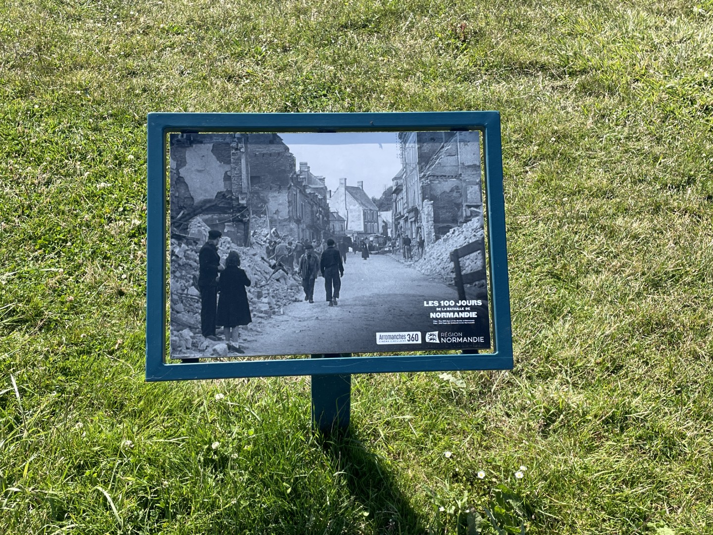 5) Arromanches 360: Arromanches 360 is een cirkelbioscoop boven op de kliffen van Arromanches-les-Bains die een film tonen van (Normandy's 100 Days / Le Prix de la Liberté) geprojecteerd op meerdere schermen, met archiefbeelden van de landingen. De filmsessies worden om de 30 minuten gegeven op het hele en het halve uur. De ticket prijs voor een volwassen kost € 7,00.