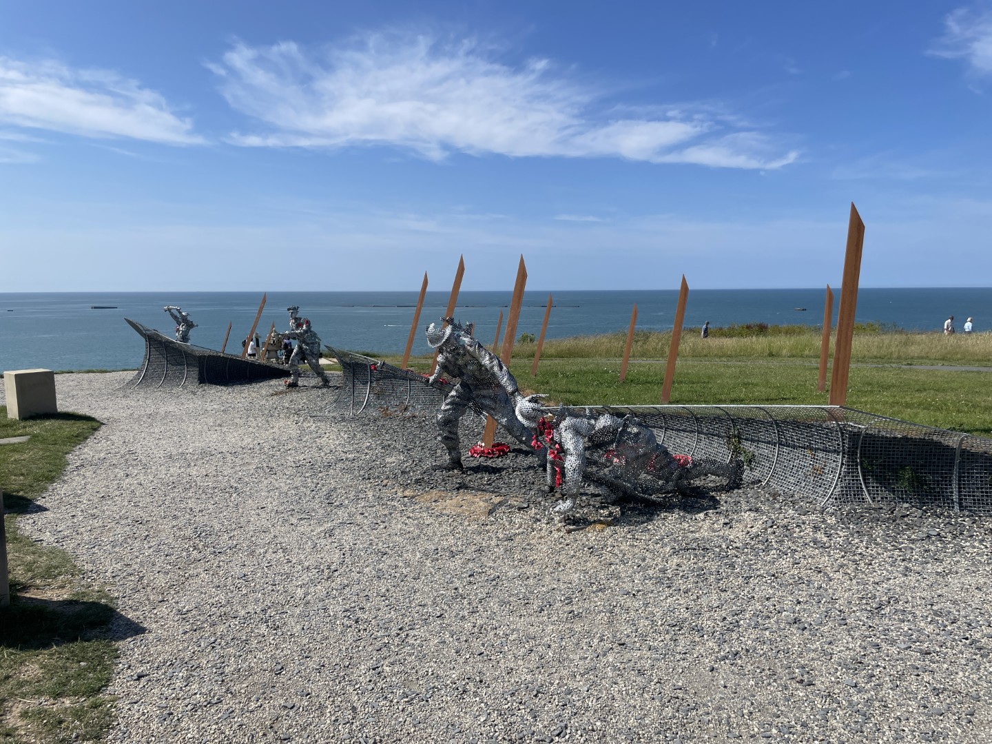 6) Le Jardin du Souvenir: This memorial garden is located on the cliffs of Arromanches. The garden pays tribute to the veterans of the Normandy landings (D-Day, June 6, 1944). It features statues/sculptures symbolizing young soldiers on the beach, stone plinths, and sculptures made of metal rings. The garden was created to commemorate the 75th anniversary of D-Day. Admission is free, and from here you have a beautiful view of Mulberry Harbour and the beaches.