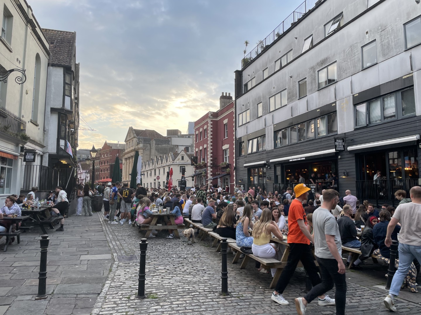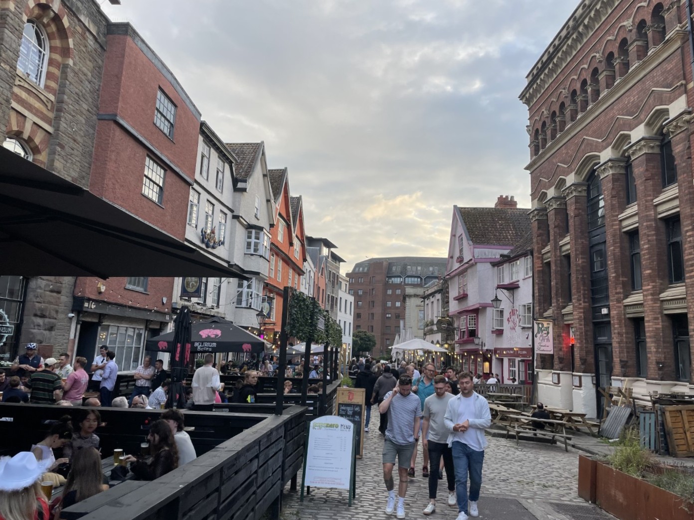 King Street is a historic street dating back to the 17th century, with beautiful cobblestones and old buildings. It is known for its pubs, bars and cafes, and is a place where people gather (see film).