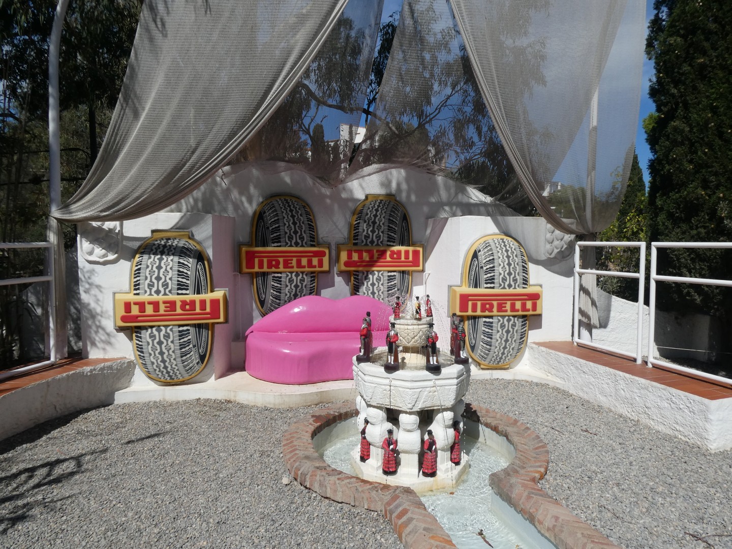 The Pirelli seating area in Dali's garden refers to the seats made with Pirelli car tires. Dalí loved to take ordinary, industrial objects out of their usual context.