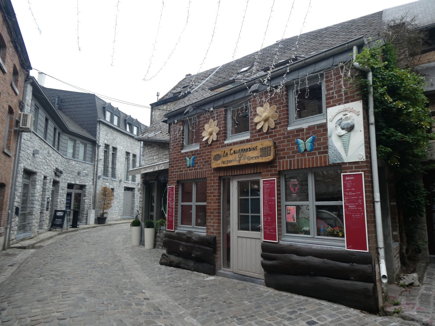 The building that houses restaurant La Vieille Demeure ( filmed here) is housed in a 17th-century building. The street is part of Durbuy's medieval center, where many buildings from the 17th and 18th centuries have been preserved.