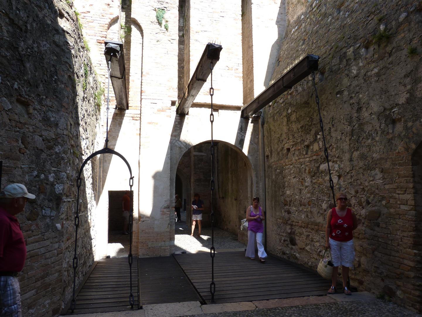 Bij de ingang van de stad zien we het imposante waterslot van de Scaligeri. Het is een echt sprookjeskasteel met torens en kantelen en stamt uit de 13e eeuw.