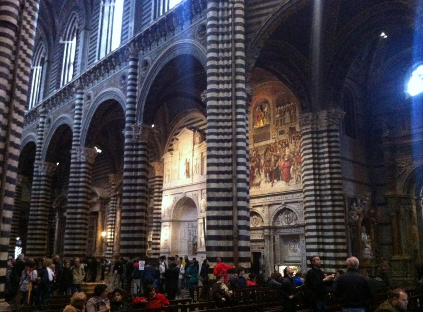 De Duomo van Siena (1136 - 1382) is een van de spectaculairste van Italië en een van de weinige die in geheel Gotische stijl is gebouwd. Gewone burgers hielpen de zwarte en witte stenen die bij de constructie werden gebruikt te vervoeren van de steengroeven buiten de stad. In 1339 besloten de Siënezen om een nieuw schip te bouwen zodat de kerk de grootste zou worden van het Christendom. Hiervan kwam niets terecht omdat de pest uitbrak en een groot deel van de bevolking stierf. In het onvoltooide schip is nu een museum met gotische beelden gevestigd.